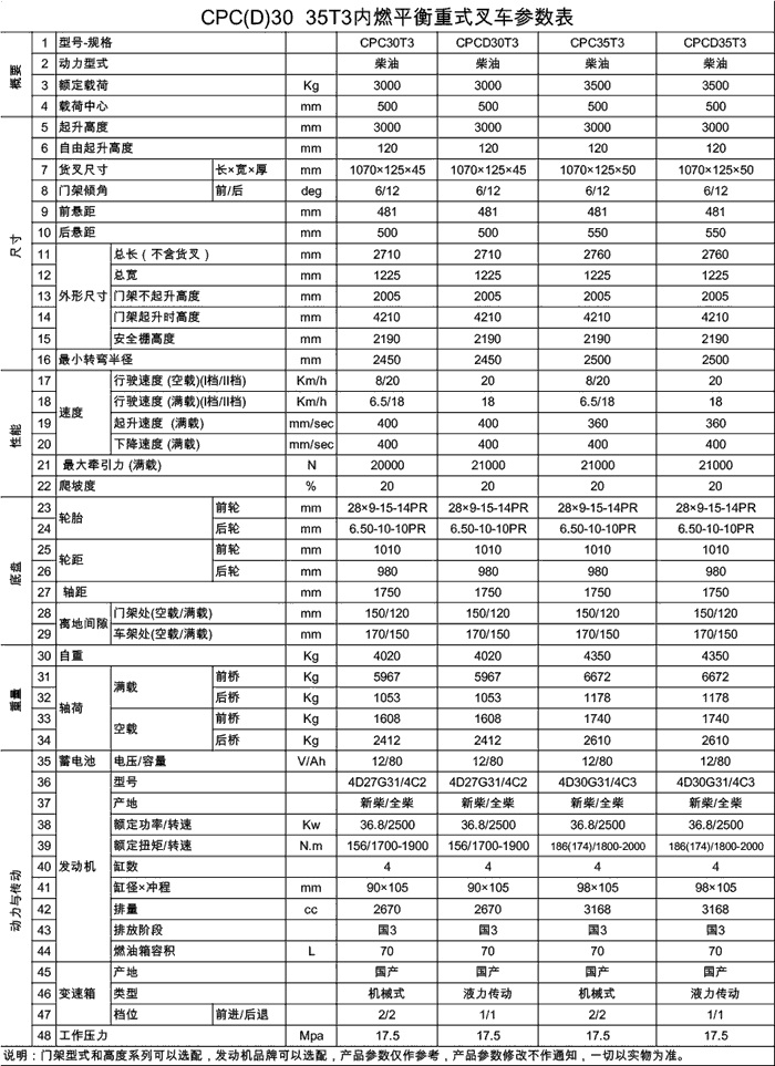 中力電動(dòng)叉車,3.0-3.5噸T3國產(chǎn)發(fā)動(dòng)機(jī)內(nèi)燃叉車(排放標(biāo)準(zhǔn)國3)